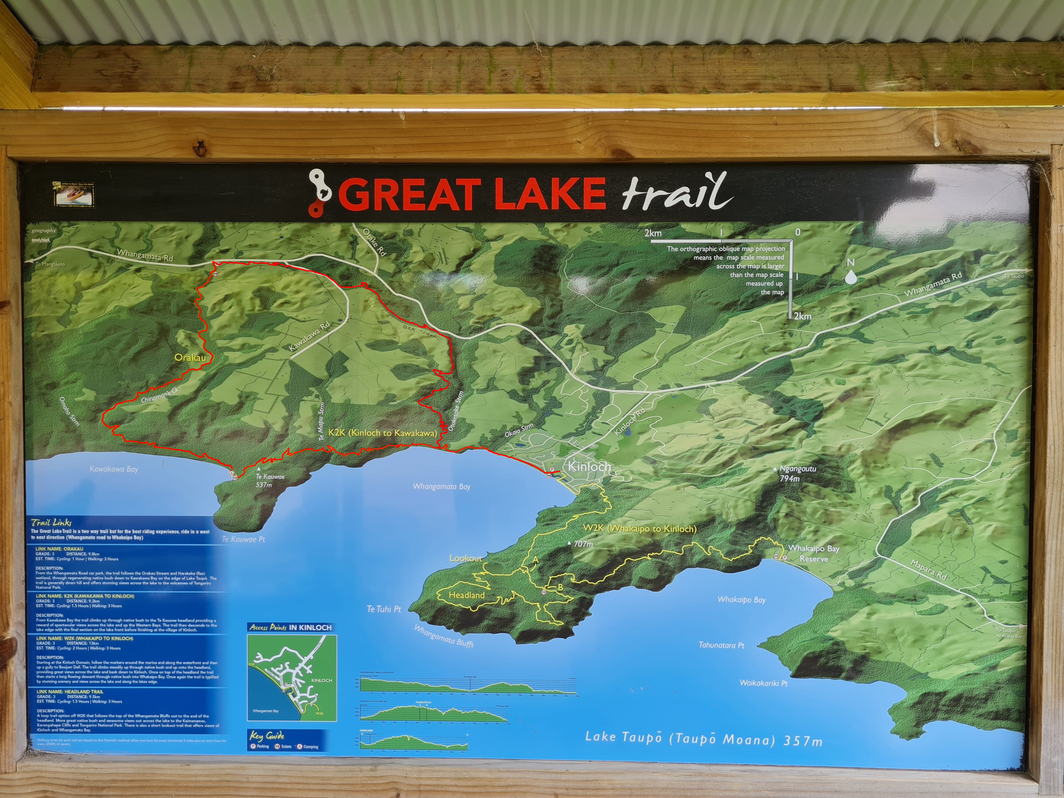 With the opening of the Otaktake Trail there is now a loop track which combines with the Kinloch to Kawakawa Section (K2K) to provide a wonderful 32 km loop which starts and finishes in Kinloch.