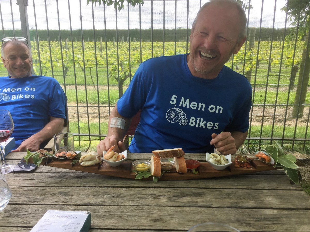 Recreational riding with five (elderly) men on bikes